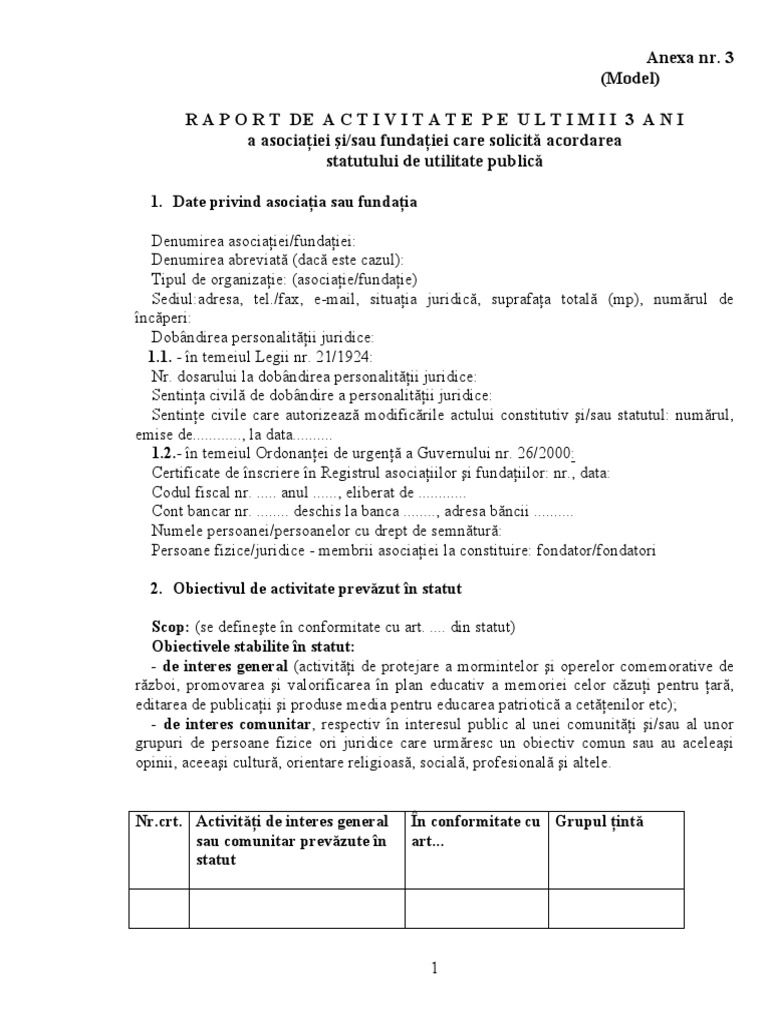Model De Raport De Activitate Ong
