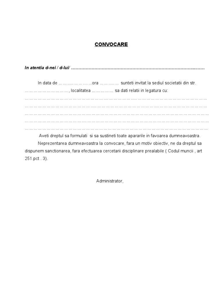 Model Convocare Disciplinara