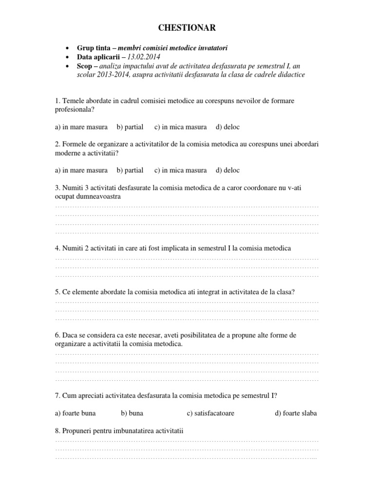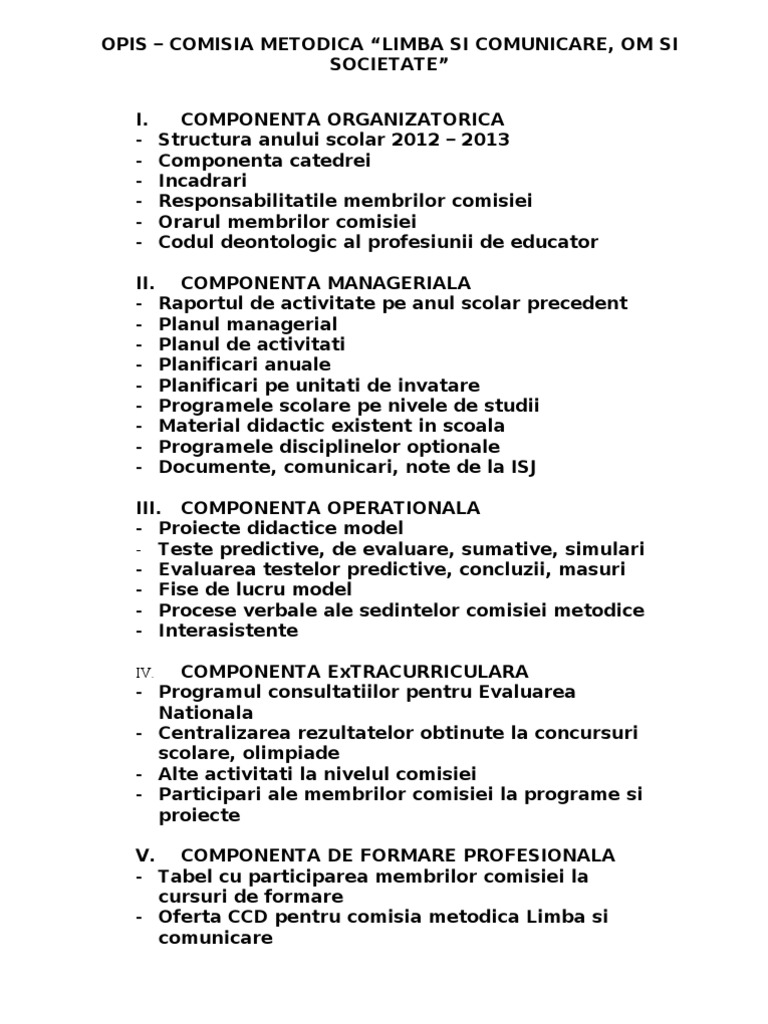 Model Raport De Activitate Comisia Metodica Om Si Societate