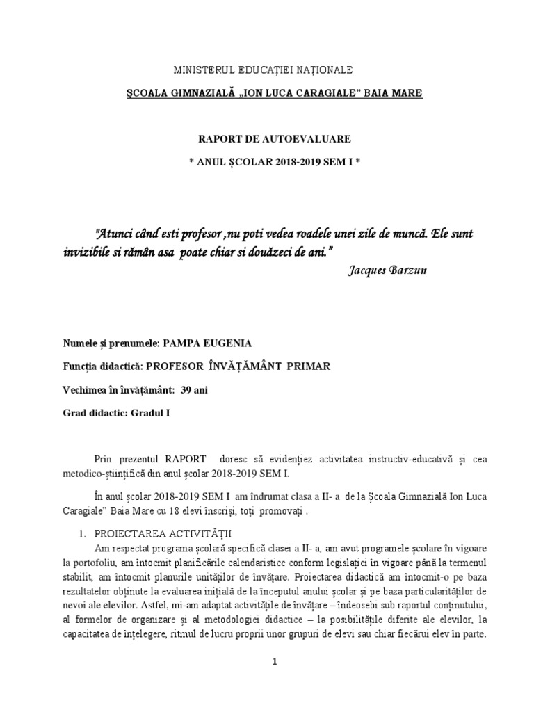 Model Raport De Activitate Invatamant Primar Semestrul 1