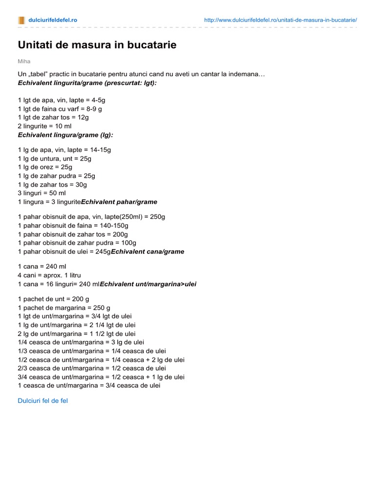 Masurarea Ingredientelor In Bucatarie Fara Cantar Tabele Masuratori Practice