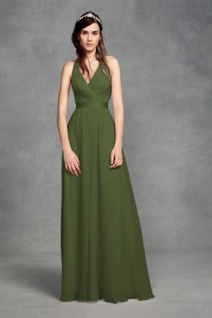 Olive Green Bridesmaid Dress Cute A Line Chiffon Floor Length