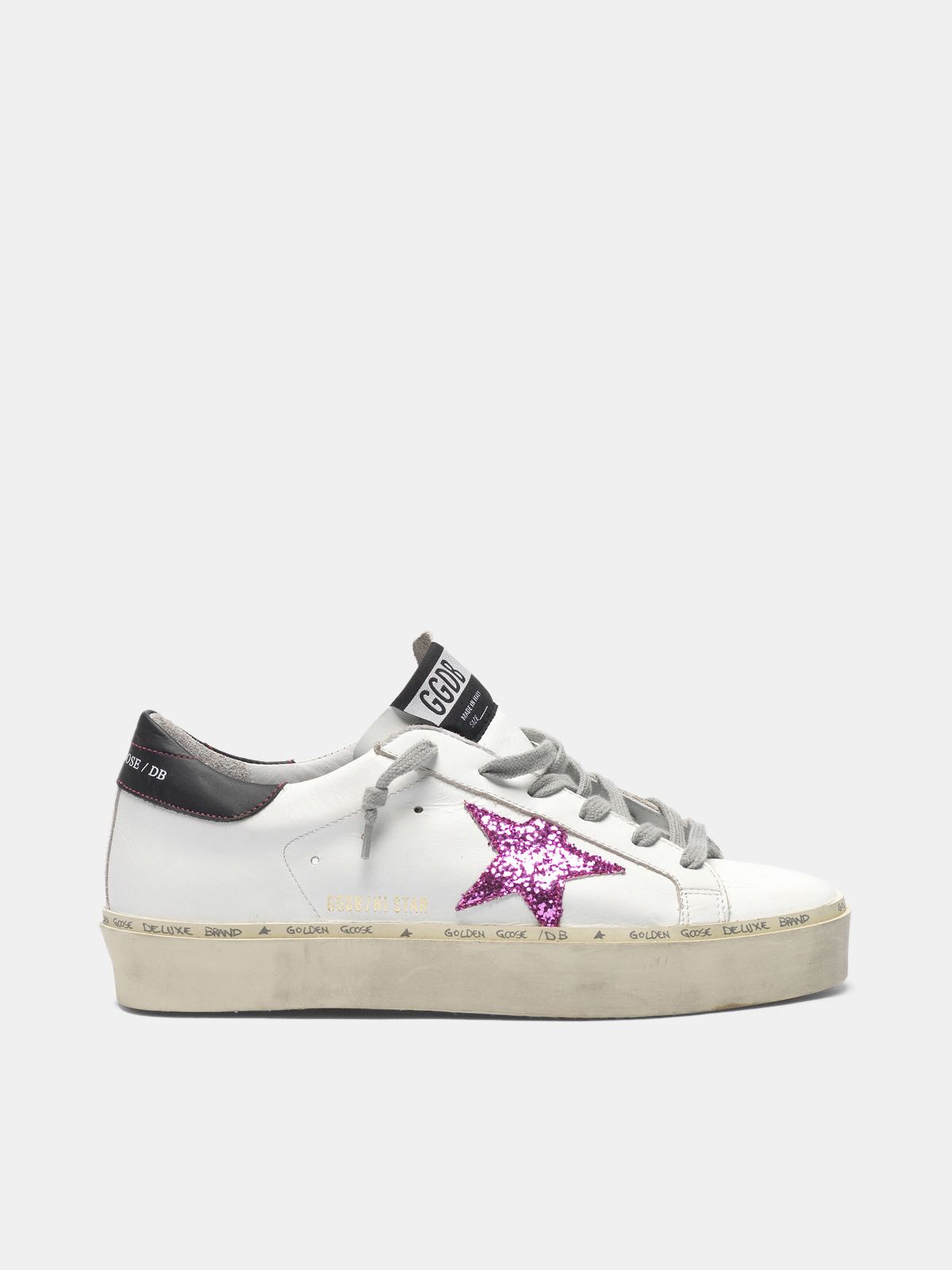 Golden Goose Hi Star Sneaker In White Pink Laminated Silver