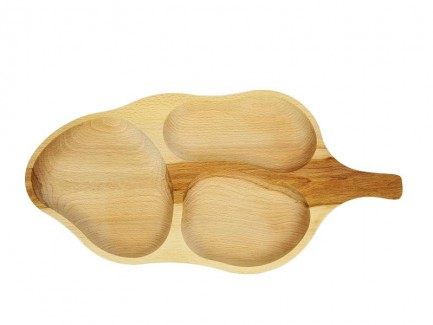 Platou Tip Frunza Tava De Servire Cu 3 Compartimente Lemn Masiv