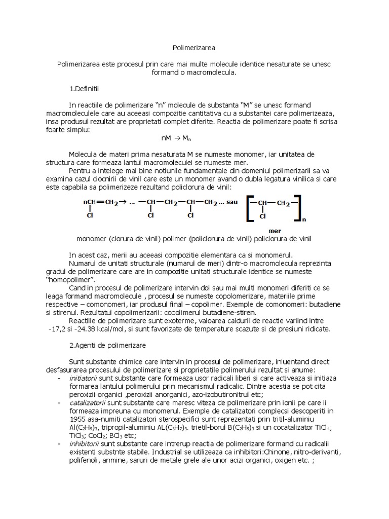 Reacții De Polimerizare și Copolimerizare Site Chimie