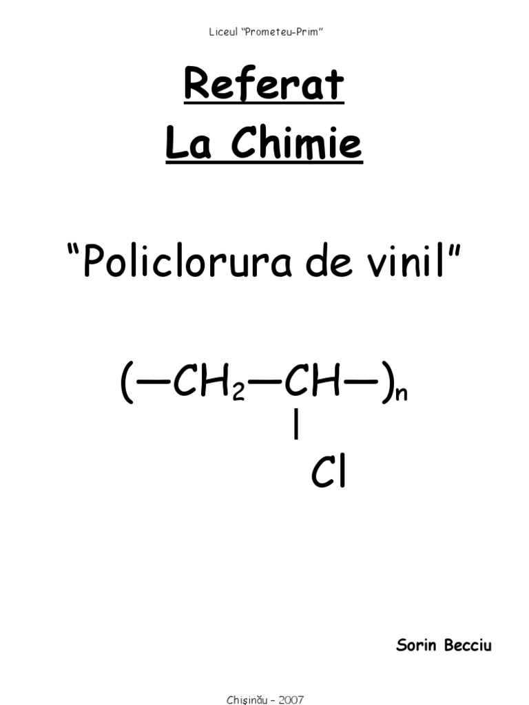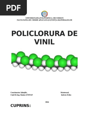 Policlorura de vinil utilizari. Clorură de polivinil pvc este un material termoplastic popular care conține un nivel ridicat de clor care pot ajunge până la 57. Policlorura de vinil pvc este o pulbere fina de culoare alba inodora solubila in cetone si tetrahidrofuran. Policlorura de vinil c2h3cl cu numele prescurtat pvc este o substanță din categoria materialelor termoplastice cu o structură amorfă. Obtinerea policlorurii de vinil plastifiate a determinat dezvoltarea productiei de policlorura de vinil inca inainte de cel de al doilea razboi mondial in sua si germania.