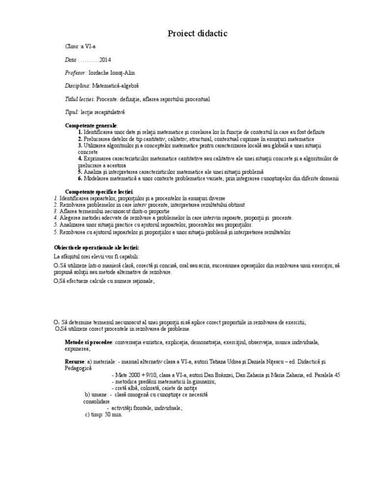 Proiect De Lectie Rapoarte Si Proportii