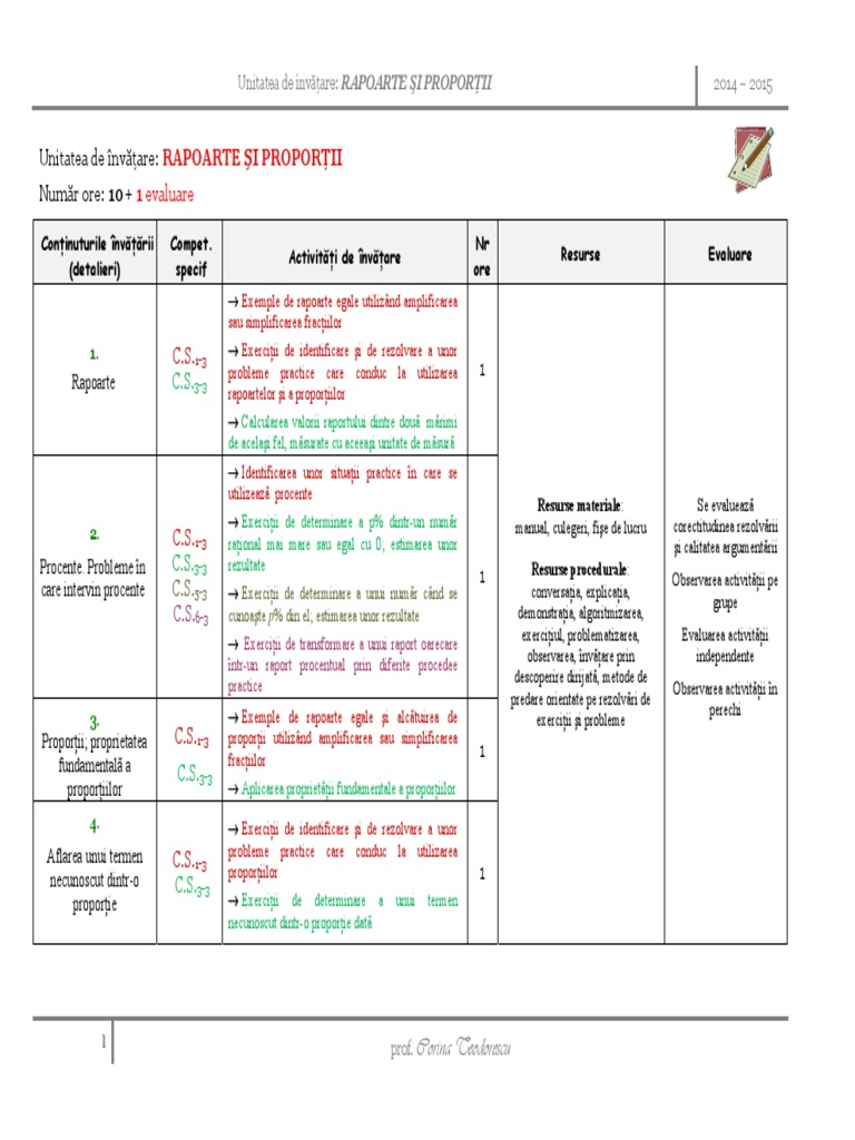 Fisa De Lucru Rapoarte Proportii