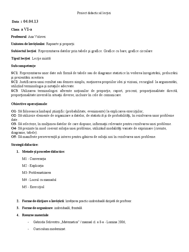Proiect De Lecţie Proporţii Derivate Claudiahus 29 03 2018