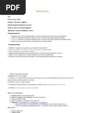 Rapoarte Si Proportii Plan De Lectie
