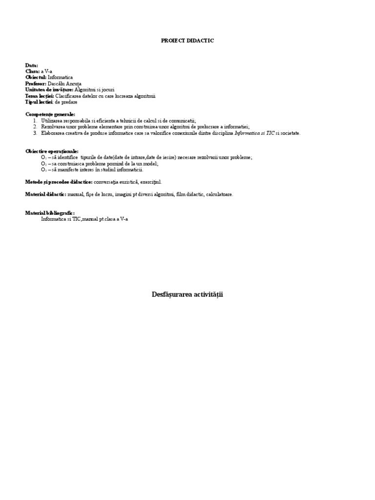 Proiect De Lectie Algoritmi Dasc