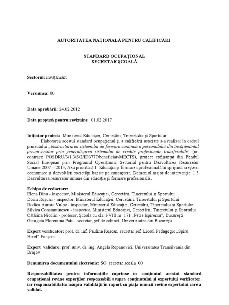 Secretar Scoala Pdf