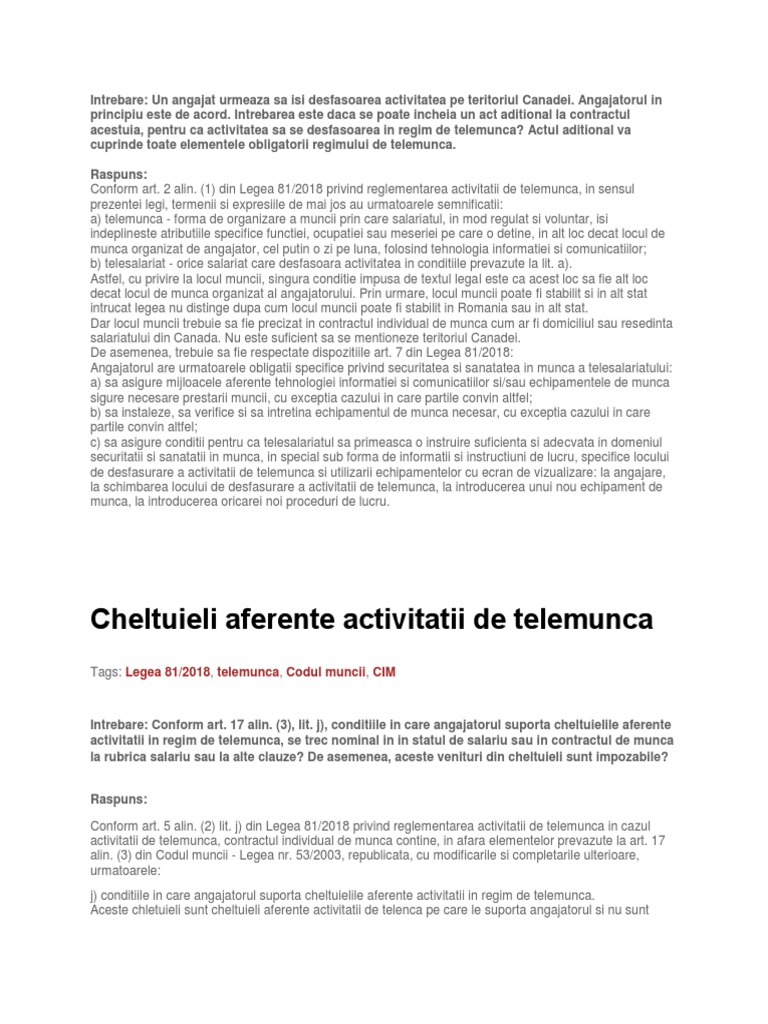 Telemunca 2019 Avantaje Dezavantaje Model Act Aditional Si Cim