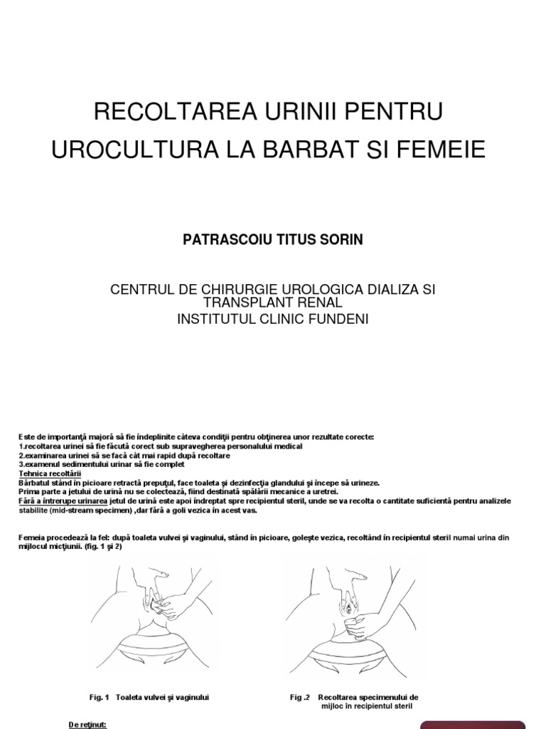 Recoltarea De Urina Examen Bacteriologic Urocultura