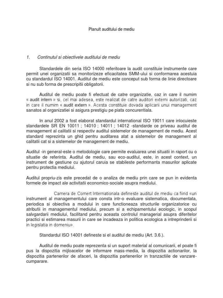 Doc Planul Auditului De Mediu Anca Staicu Academia Edu