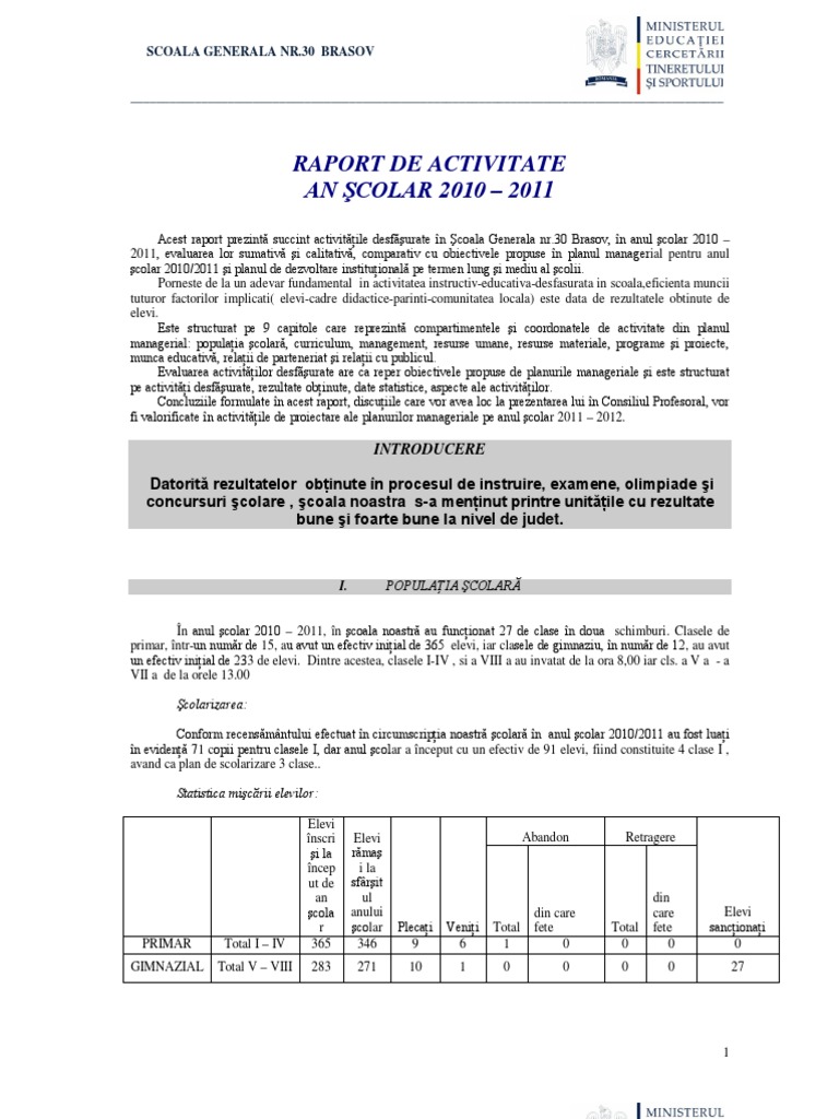 Raport Privind Starea Invățămantului Din Județul Pdf Document