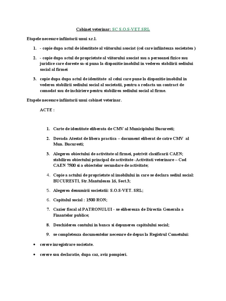Etapele Necesare Infiintarii Unui S
