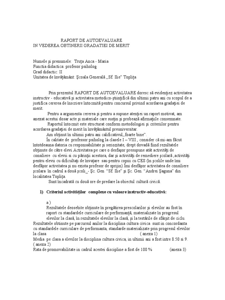 Raport De Autoevaluare Gradatie De Merit 20121
