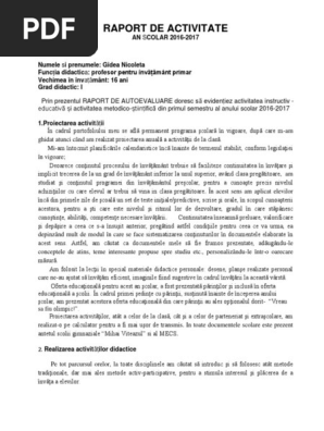Raport De Autoevaluare Pentru Conferirea Gradului Didactic Doi