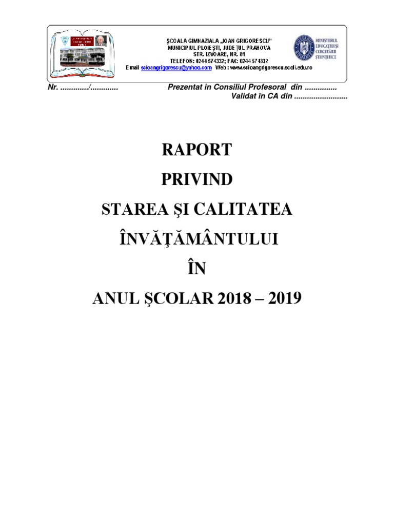 Raport De Activitate Scoala 18 19
