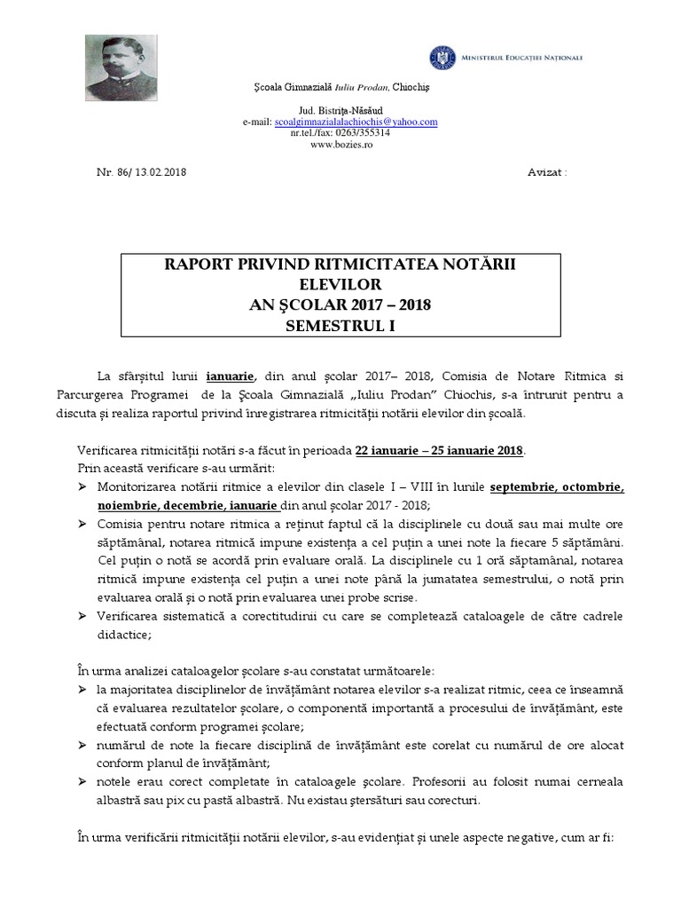 Raport Privind Ritmicitatea Notării Elevilor An Scolar 2017 2018