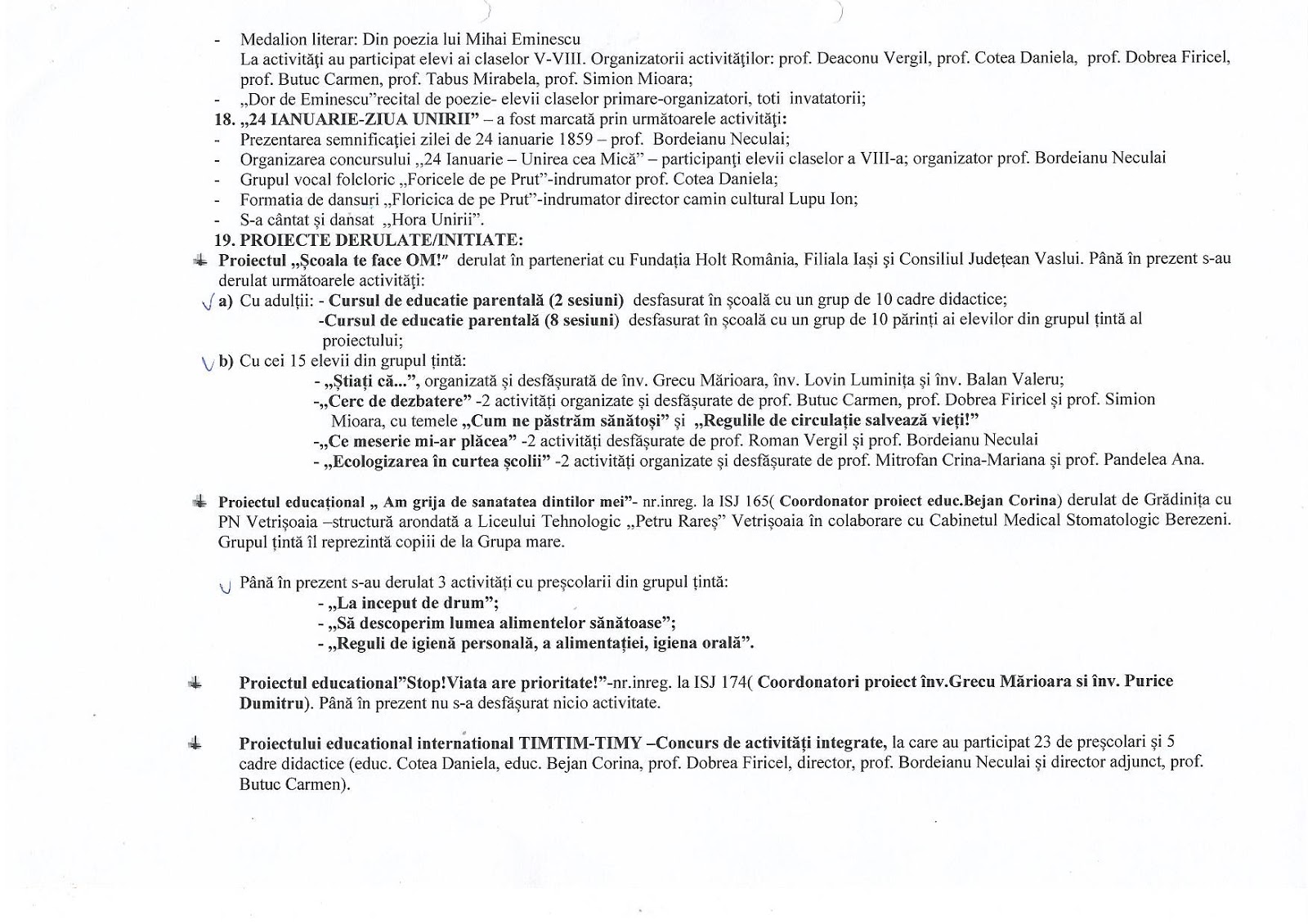 Raport De Activitate Al Coordonatorului De Proiecte Si Programe Educative Scolare Si Extrascolare