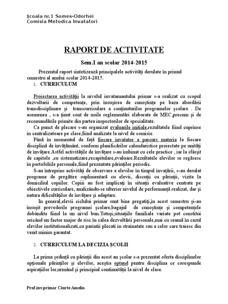 Raport De Activitate Model Inv Primar