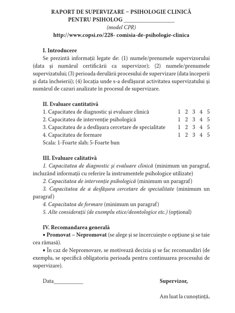 Doc Raport De Supervizare Psihologie Clinică Pentru Psiholog