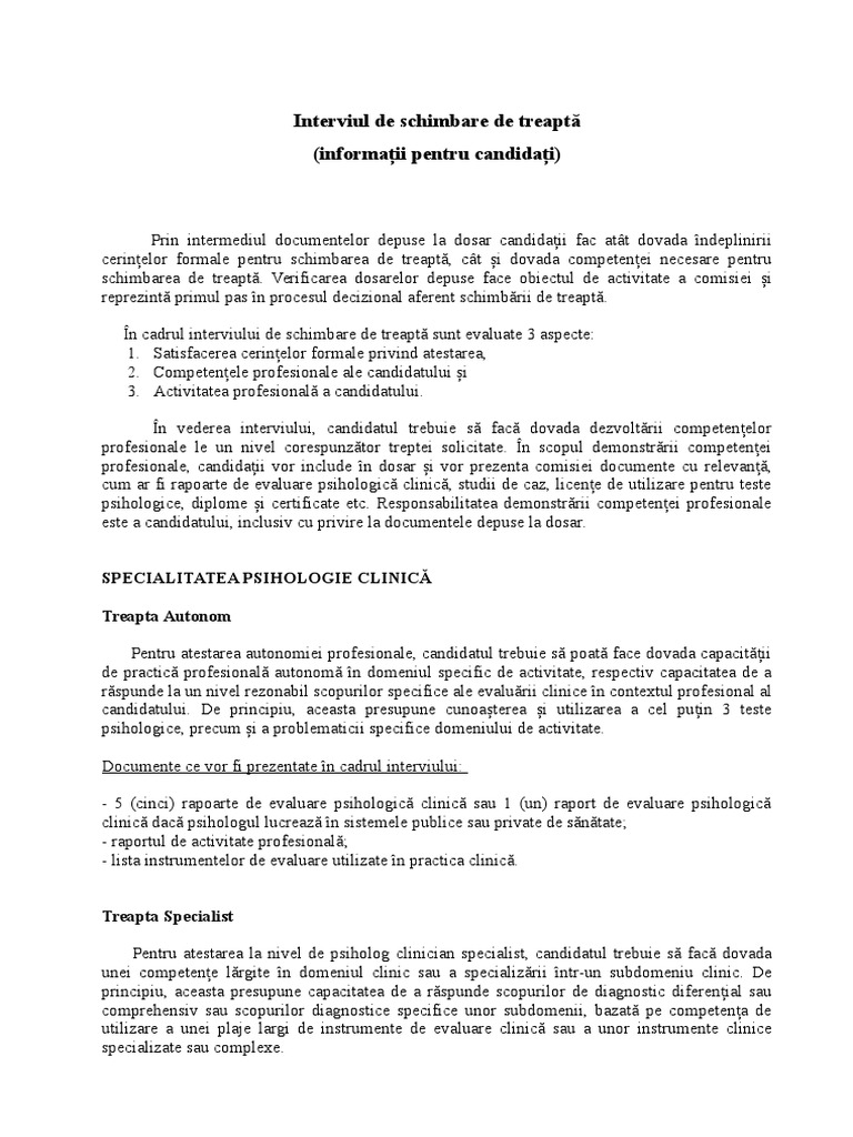 Ghid Interviu Schimbare De Treapta Clinica Psihoterapie
