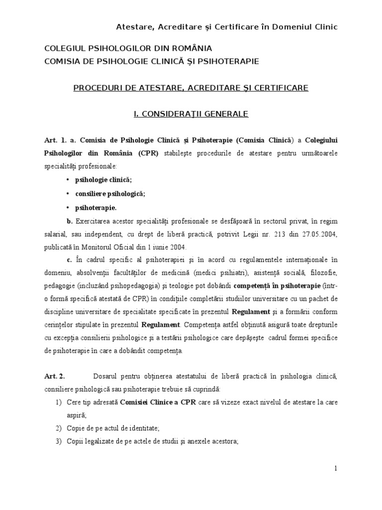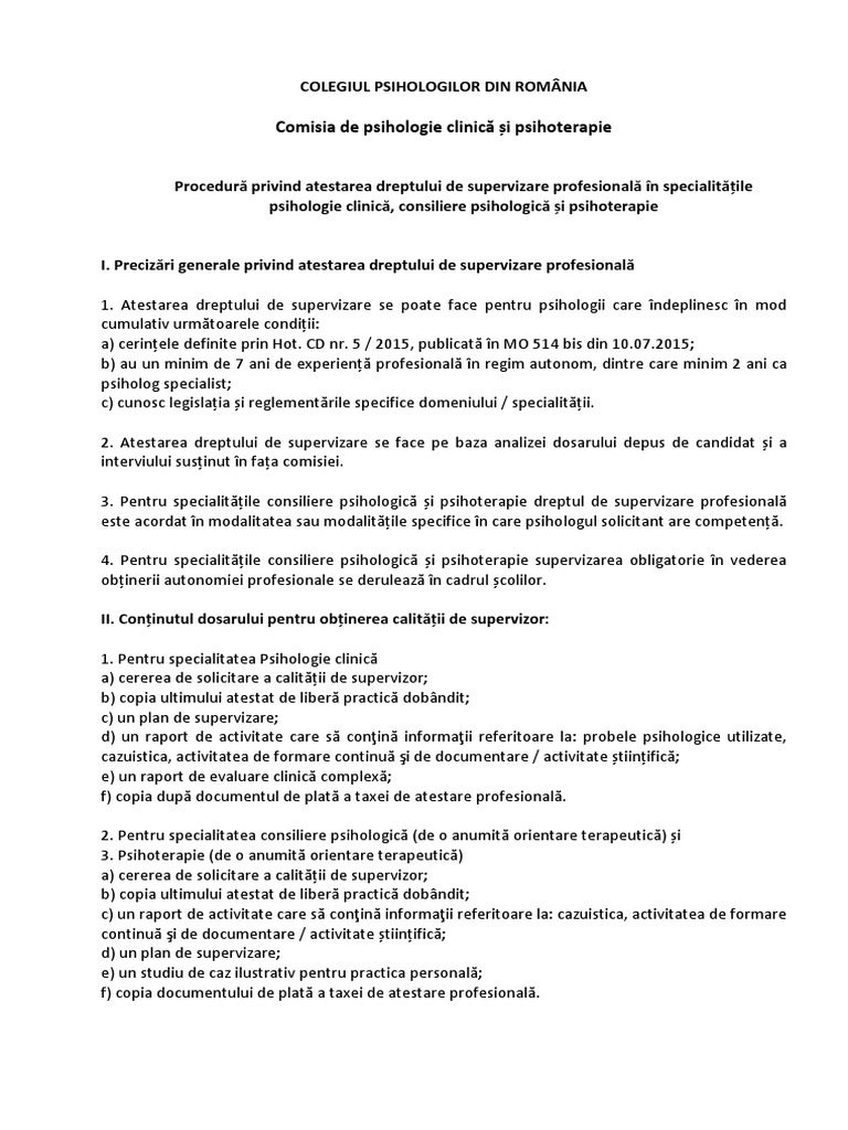 1 Procedura Atestare Supervizori Comisia De Psihologie Clinica
