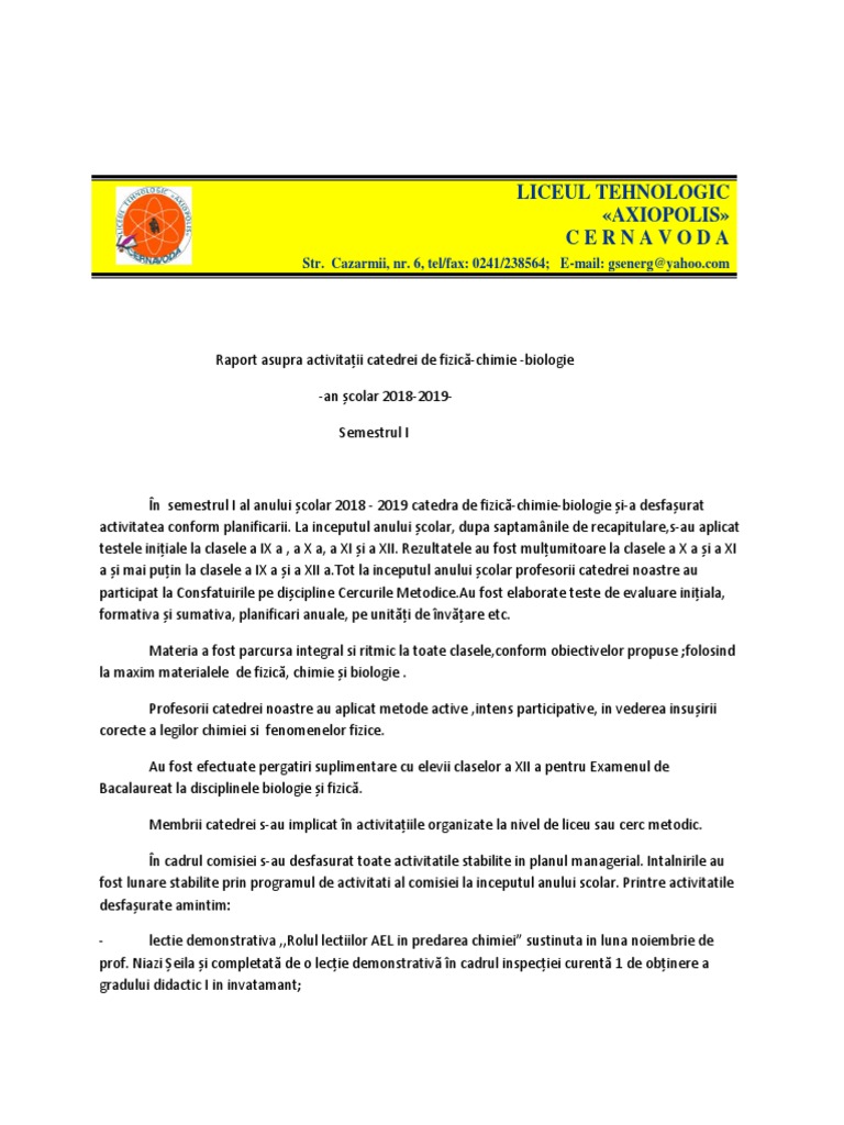 Raport De Activitate Profesor Fizica Chimie