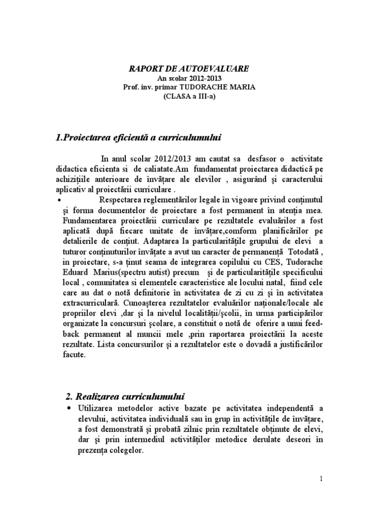 Raport De Autoevaluare Pentru Conferirea Gradului Didactic Doi