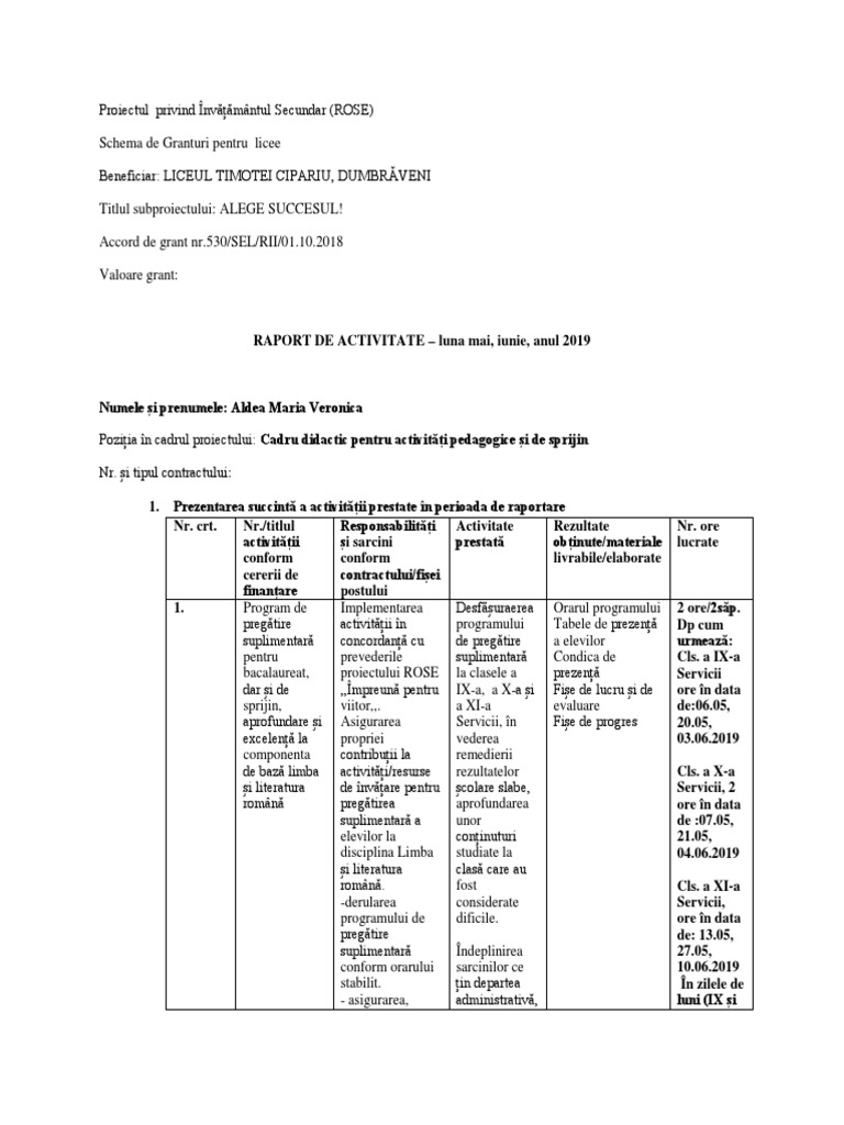 Raport De Activiatate Lunar Rose Mai Iunie 2019 Docx