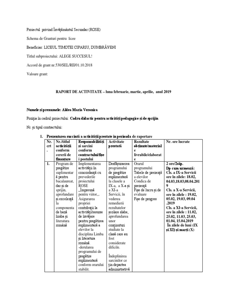 Raport De Activiatate Lunar Rose Febr Martie April Docx