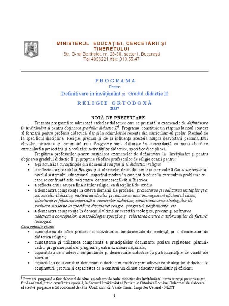 Pdf Programa Titularizare Religie Ortodoxa Oare Care Academia Edu