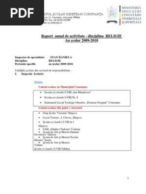 Raport De Activitate Religie Ortodoxa