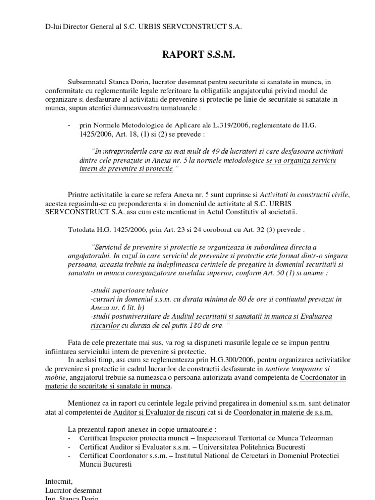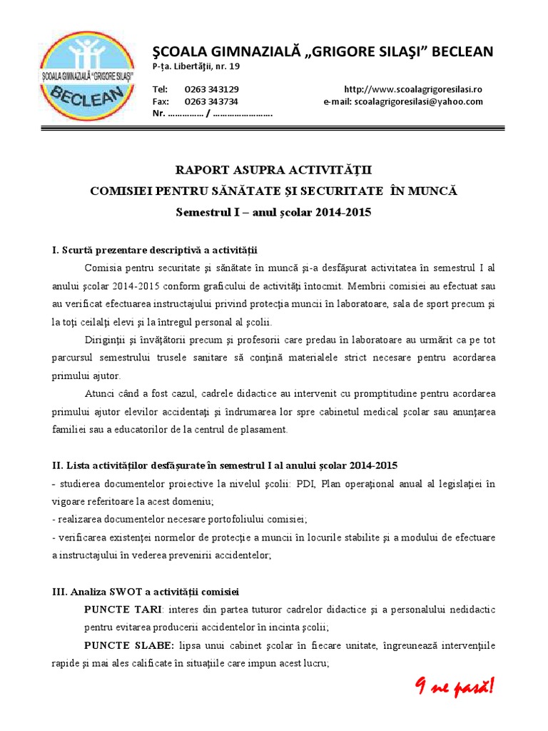Raport De Activitate Ssm Model