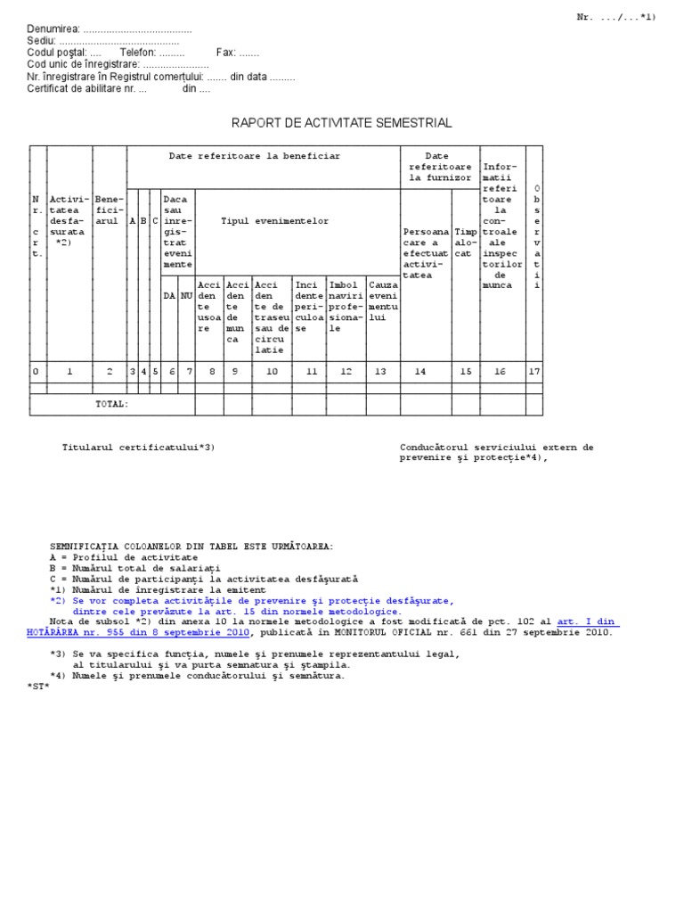 Model Raport De Activitate Al Serviciului Extern De Prevenire Si