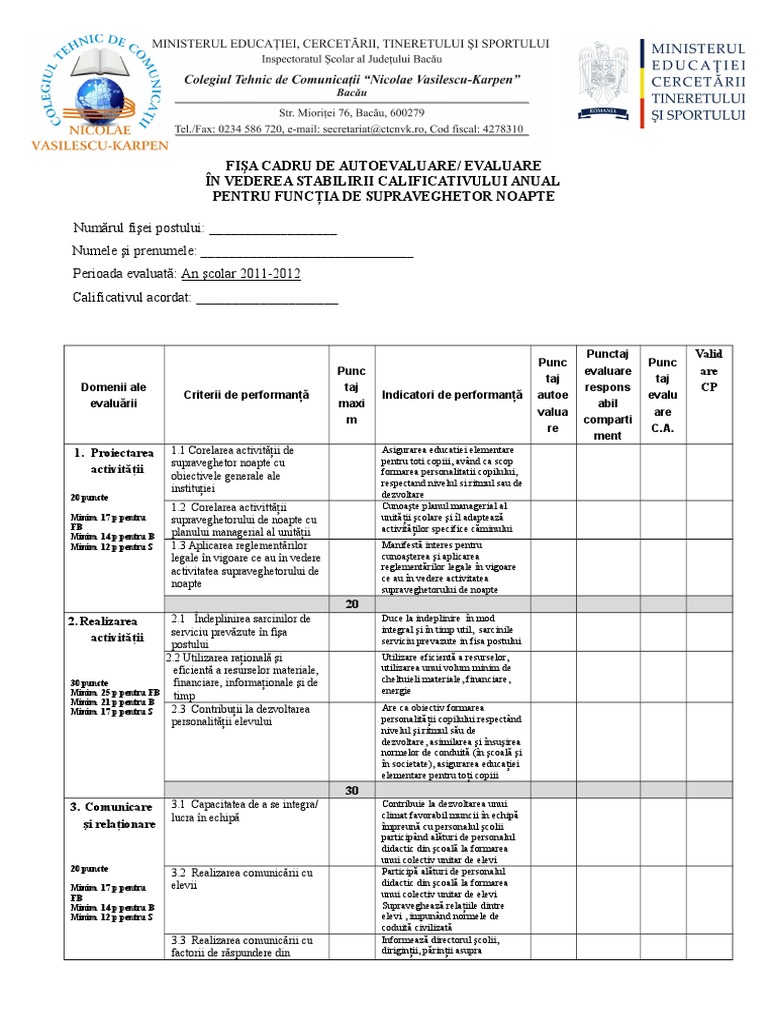 Raport De Autoevaluare Profesor In Vederea Acordarii Calificativului Anual