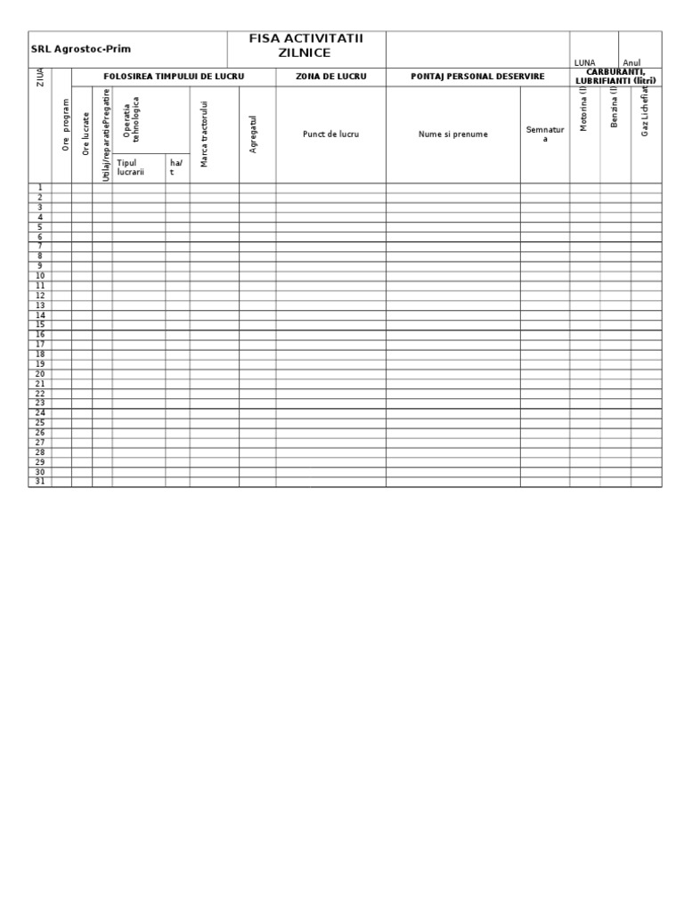 Model Fisa Activitate Zilnica