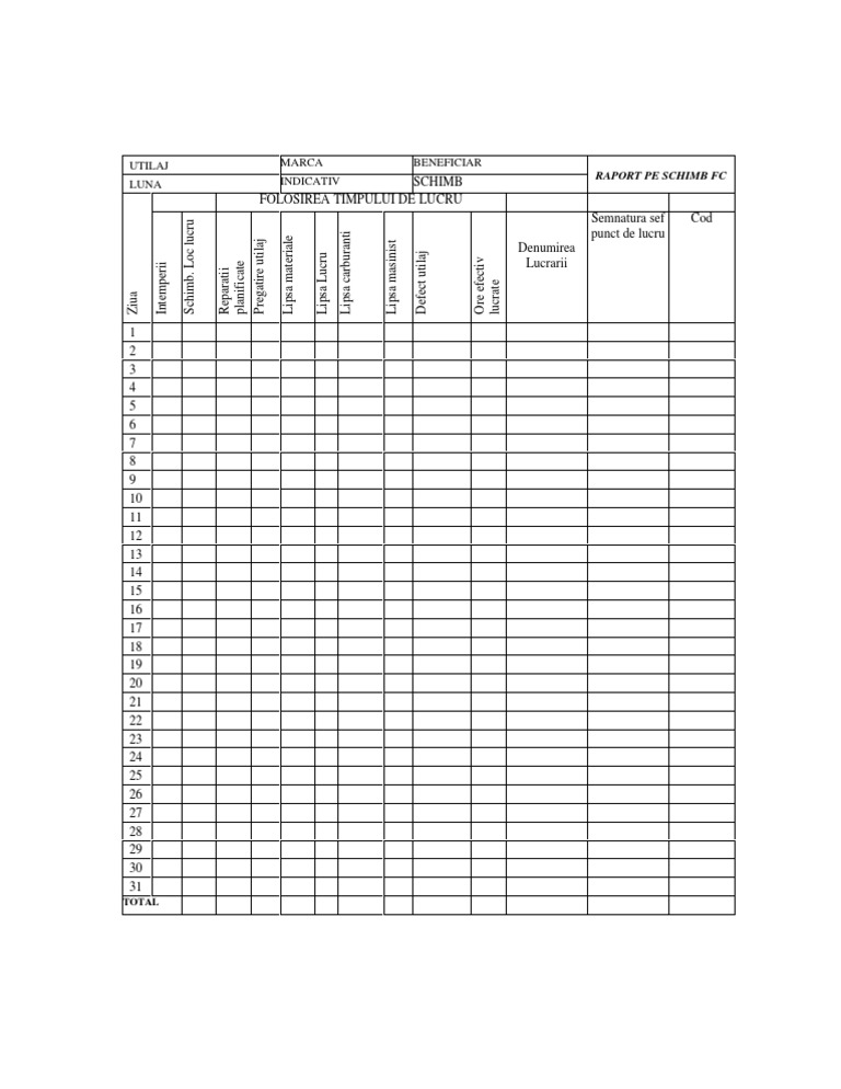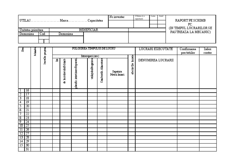Raport De Schimb Utilaje Pdf Document