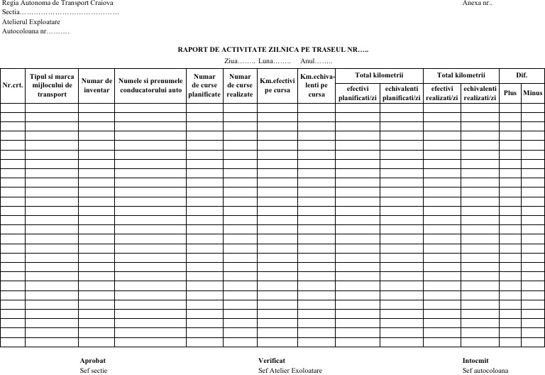Software Parc Auto Raport Fisa De Activitati Zilnice In Cadrul