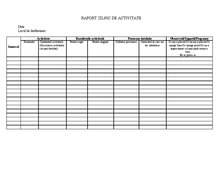 Raport De Activitate Model Zilnic