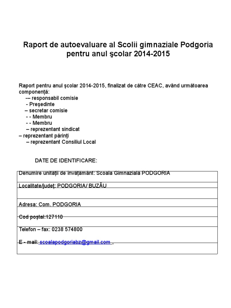 Raport De Activitate Pe Anul Scolar 2014 2015 Liceul Pdf Document