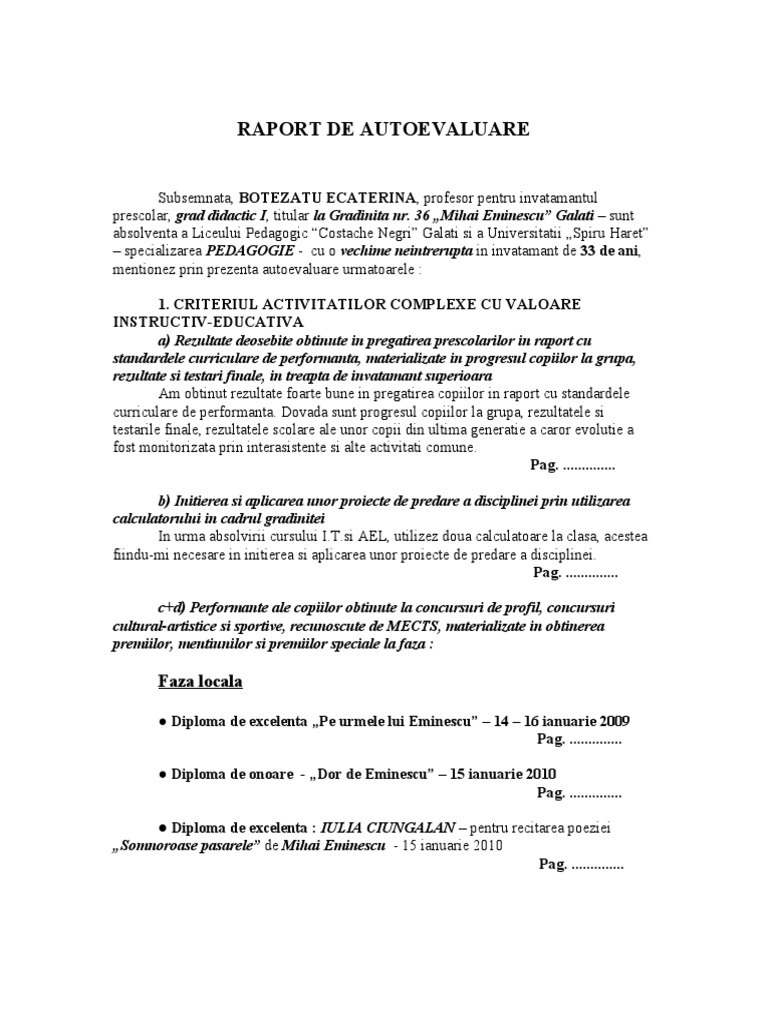 Doc Raport De Autoevaluare Evaluare In Vederea Acordării Calificativului Anual Pentru Cadrele Didactice Din Invăţămantul Preuniversitar Doina Vieru Academia Edu