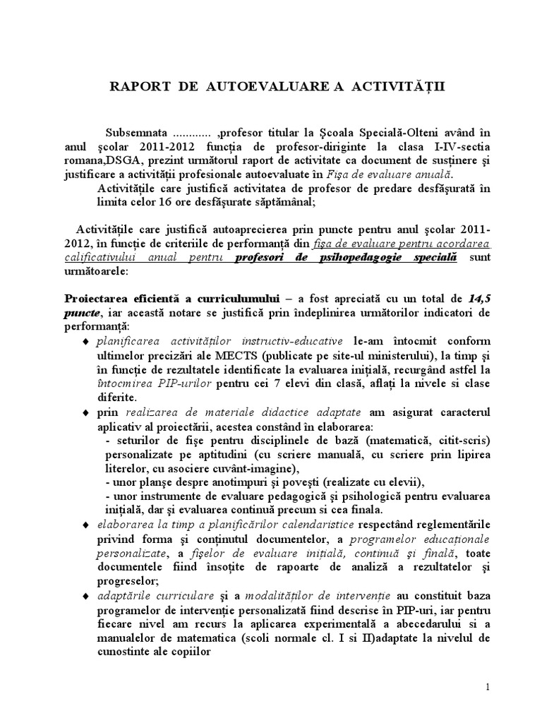 Raport De Autoevaluare A Cadrului Didactic Dina