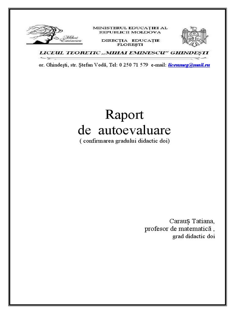 Doc Raport De Autoevaluare Evaluare In Vederea Acordării Calificativului Anual Pentru Cadrele Didactice Din Invăţămantul Preuniversitar Doina Vieru Academia Edu
