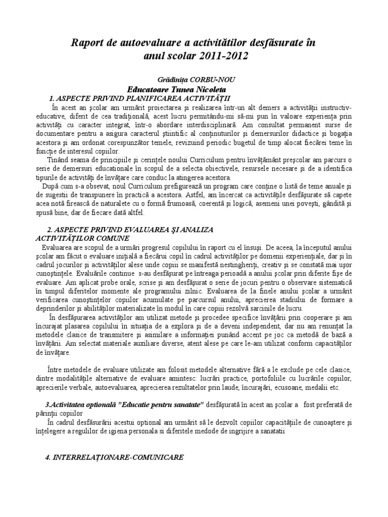 Https Gradinitasfanacraiova Ro Wp Content Uploads 2018 09 Raport De Autoevaluare 2018 Andreea Pdf