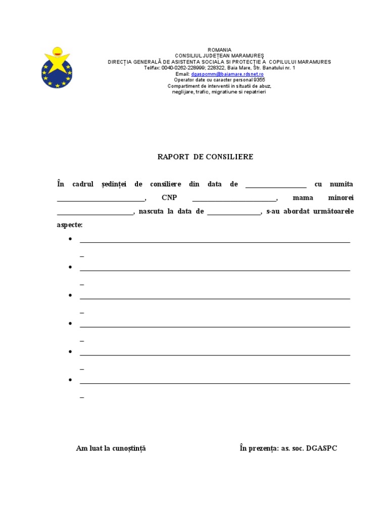 Raport De Consiliere Psihologica Model
