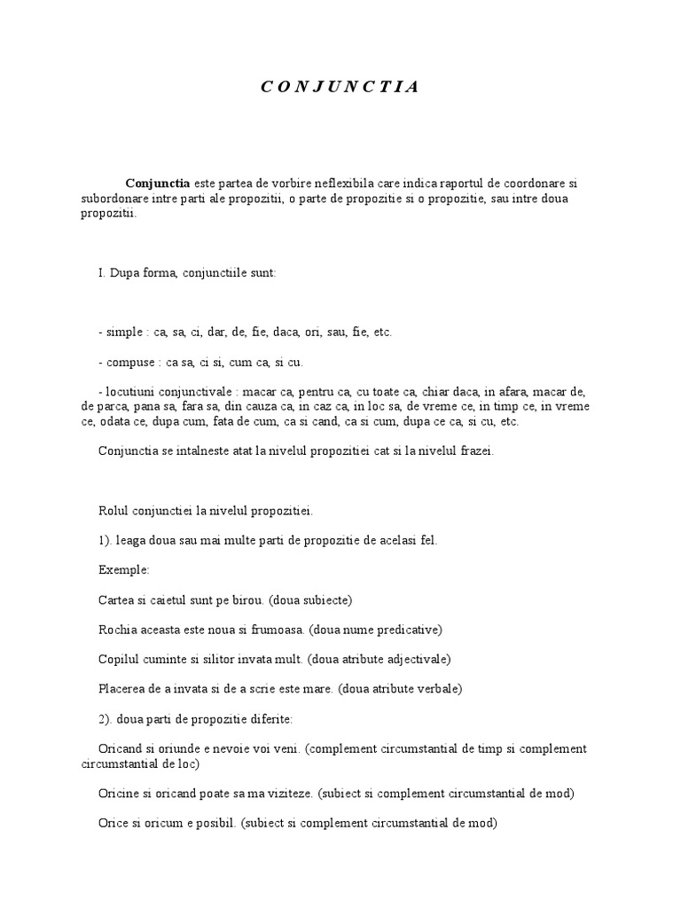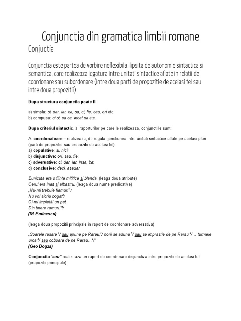 Conjunctia Din Gramatica Limbii Romane Pdf Document
